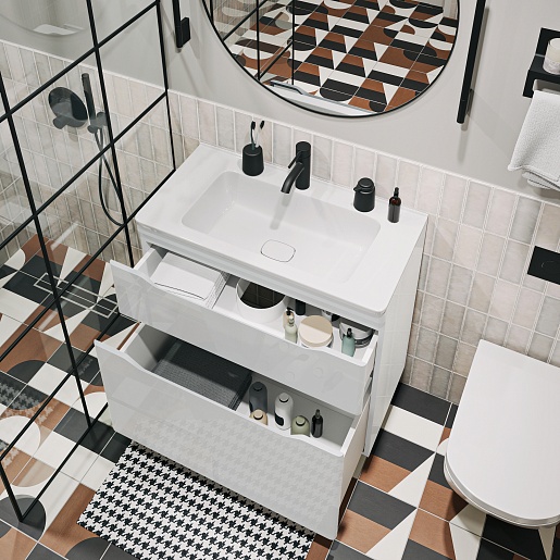 Напольная тумба с раковиной Vivon Shelly 80 белая глянцевая.