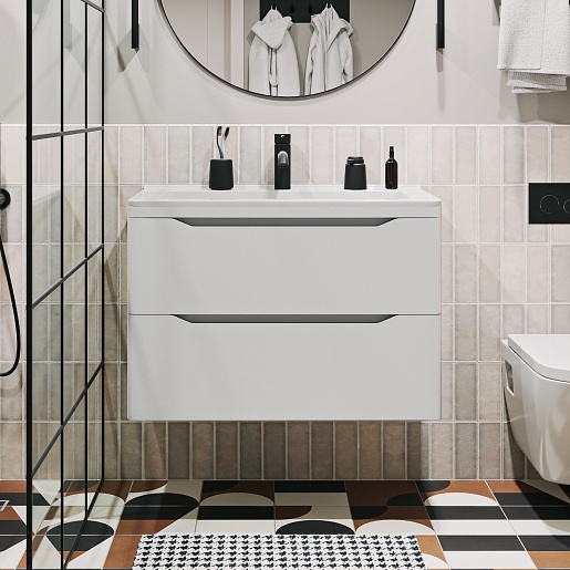 Тумба под раковину Shelly 80 подвесная белая матовая