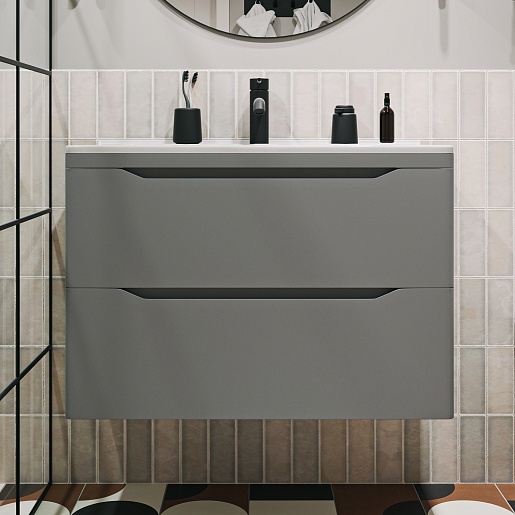 Тумба под раковину Shelly 80 подвесная серая матовая