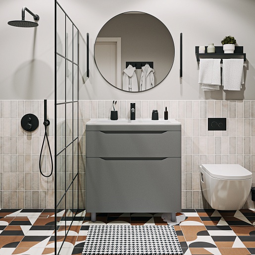 Напольная тумба с раковиной Vivon Shelly 80 серая матовая.