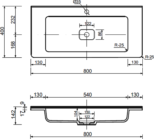 - Раковина из литьевого мрамора с отверстием слив-перелива и декоративной накладкой на сливное отверстие.