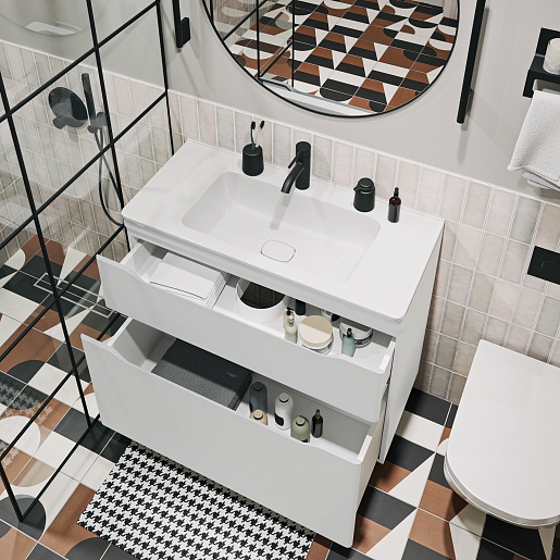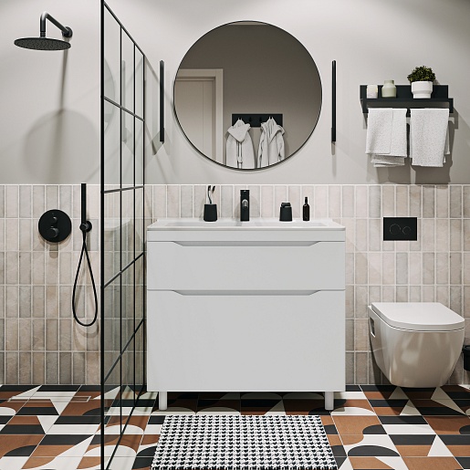 Напольная тумба с раковиной Vivon Shelly 90 белая матовая.