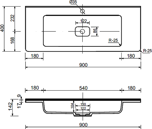 - Раковина из литьевого мрамора с отверстием слив-перелива и декоративной накладкой на сливное отверстие.