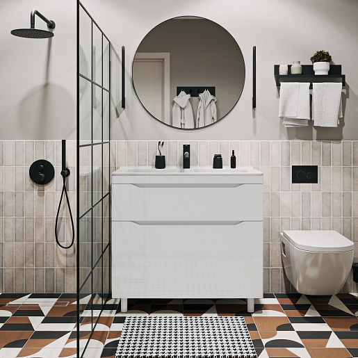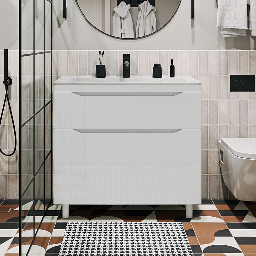 Напольная тумба с раковиной Vivon Shelly 90 белая глянцевая.