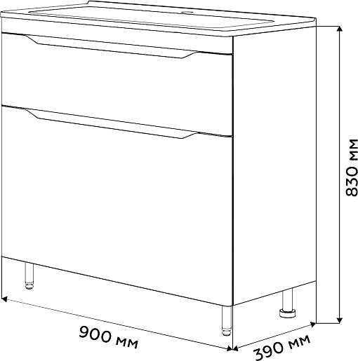 В комплекте: тумба, раковина, ножки.