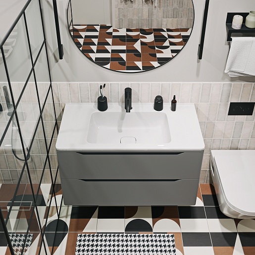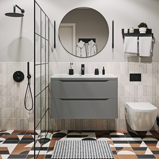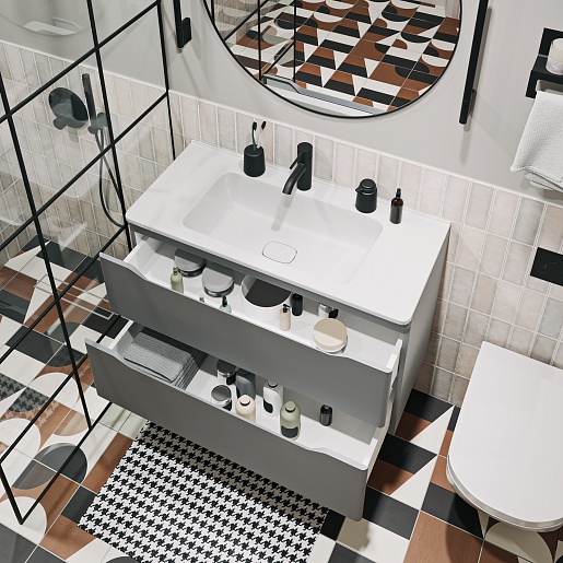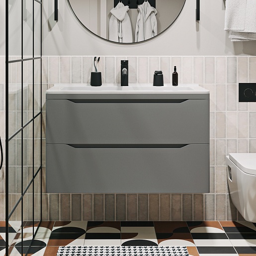 Тумба под раковину Shelly 90 подвесная серая матовая