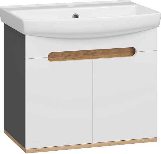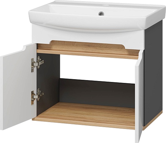 Тумба под раковину Сканди 60 подвесная белая/дуб крафт золотой/антрацит