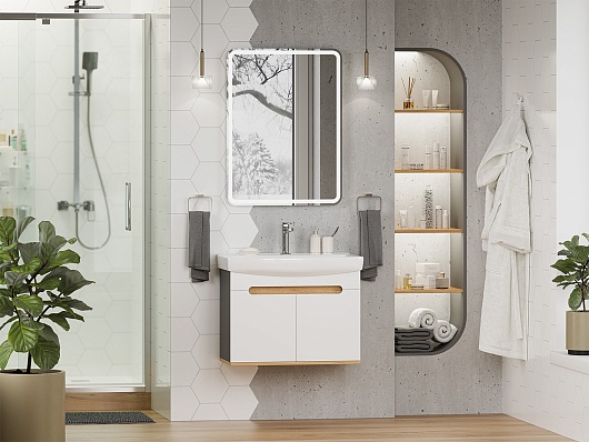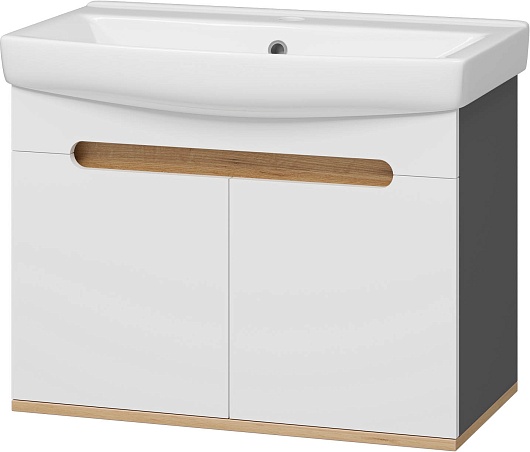 Тумба под раковину Сканди 70 подвесная белая/дуб крафт золотой/антрацит