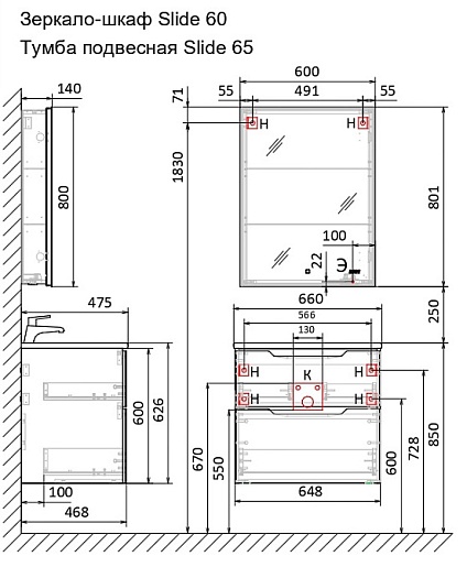 Jorno Тумба с раковиной Slide 65 белая