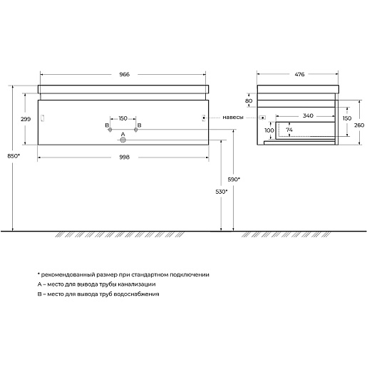 Мебельная раковина Slider 100/48 белая CZR-1000/480-LV-MR-PRS