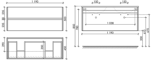 - ШхГхВ: 119x45x50 см.