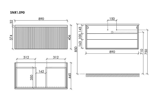 Sancos Тумба с раковиной Snob R 1.0 90 bianco раковина Element 91 CN7002