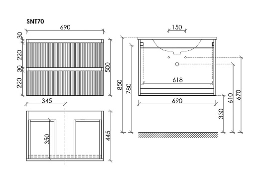 Тумба под раковину Snob T 70 beige soft SNT70CE