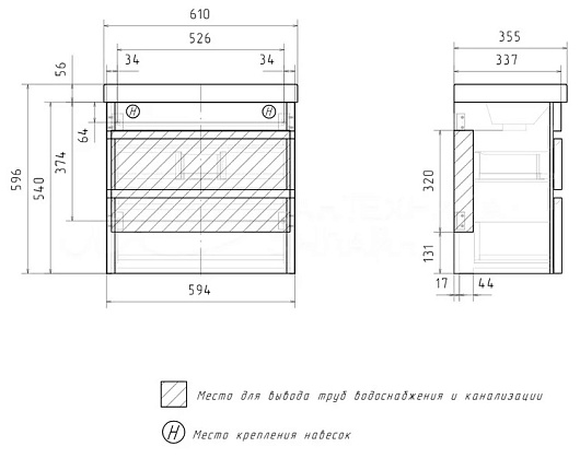 Equil Тумба с раковиной Soldi 60 2 ящика подвесная белый софт