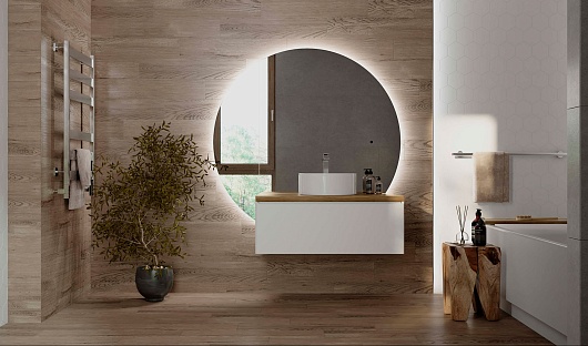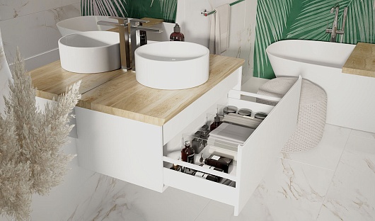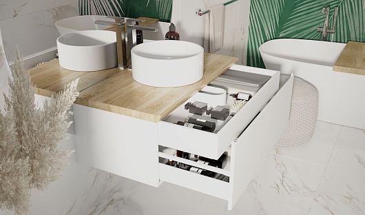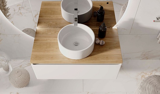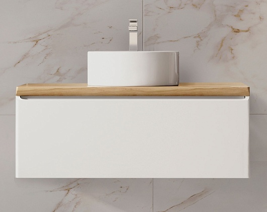 Jorno Тумба с раковиной Solis new 100 белая подвесная со столешницей из массива бука