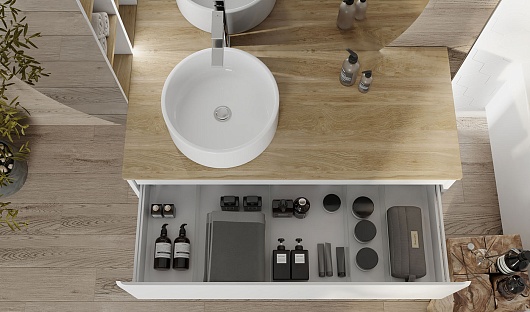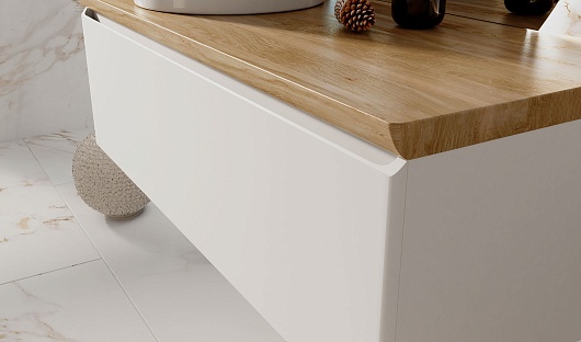 Jorno Тумба с раковиной Solis new 120 белая подвесная со столешницей из массива бука