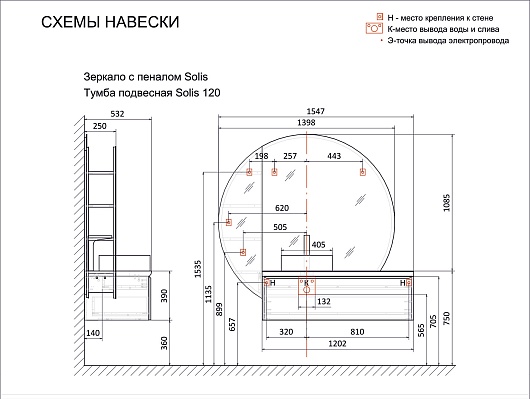 Тумба под раковину Solis new 120 белая SolN.01.120/P/W/JR подвесная