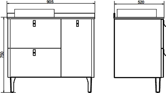 - 2 выдвижных ящика, 1 выдвижная корзина для белья.
