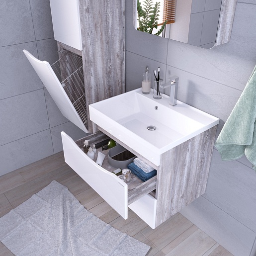 Тумба под раковину Талис 60 подвесная бетон пайн/белая