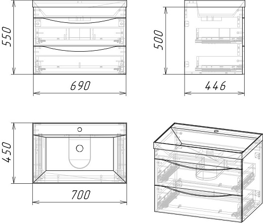 Подвесная тумба с раковиной Grossman Талис 70 - арт. 107010 / 4627173210171.