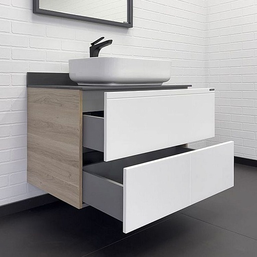 Comforty Тумба с раковиной Таллин 80 подвесная белая матовая/дуб натуральный