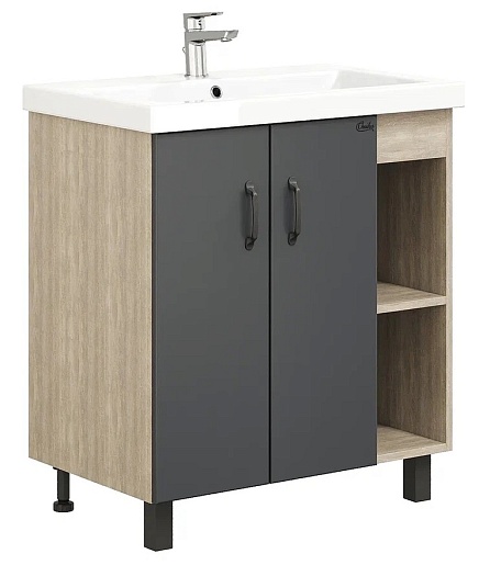 Onika Тумба с раковиной Тимбер 90 напольная графит/дуб сонома правая