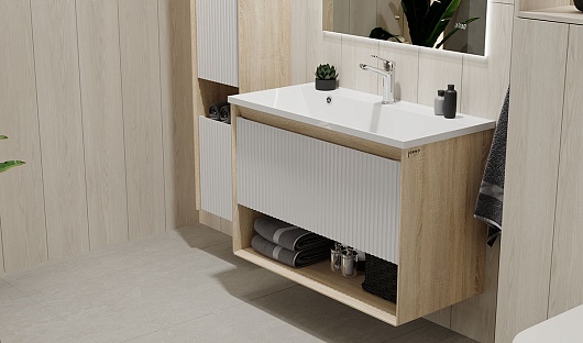 Тумба под раковину Tossony 90 сонома светлая/белый Toss.01.90/P/SS-W/JR