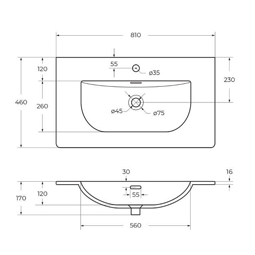 - Керамическая раковина BB-8099-80, 810x460x170.