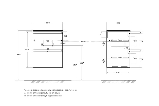 Тумба под раковину Uno mini 50 подвесная Бежевый матовый