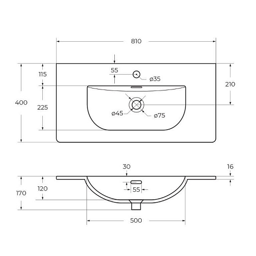 - Керамическая раковина BB-8099-3-80, 810x400x170.