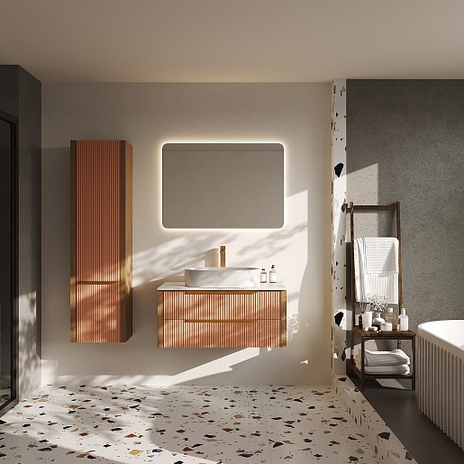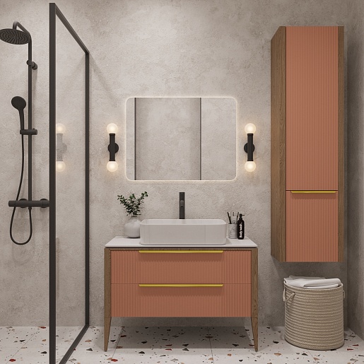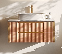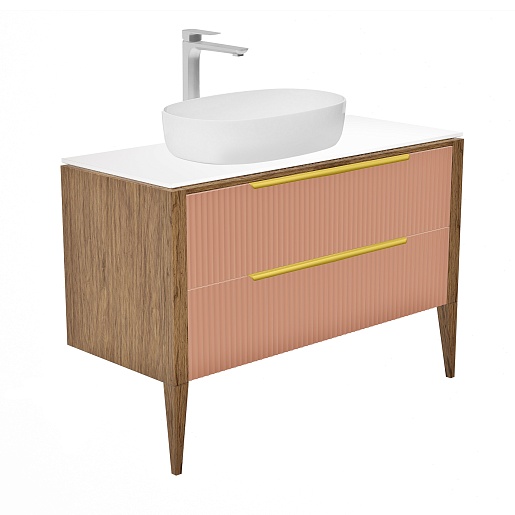 Тумба под раковину Валенсия 100 подвесная бежево-розовая/столешница белая