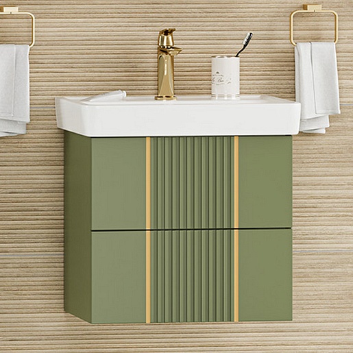 Тумба под раковину Vega 60 подвесная зеленая/золото