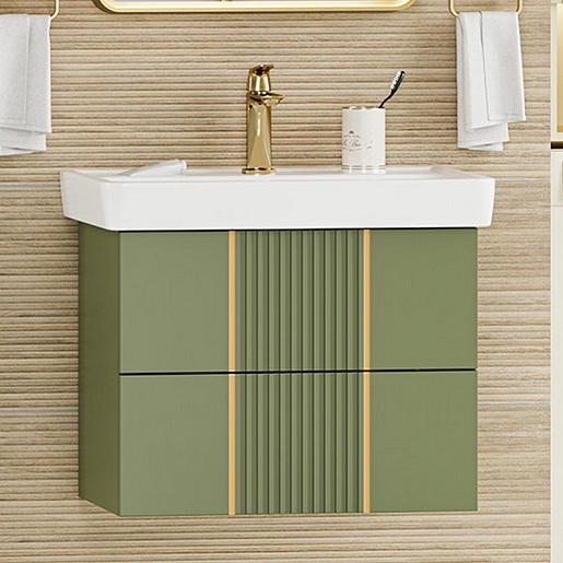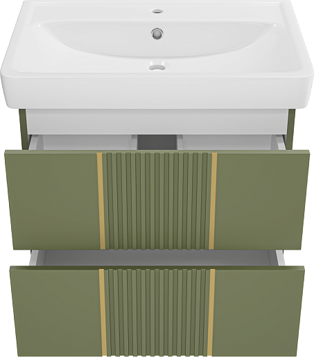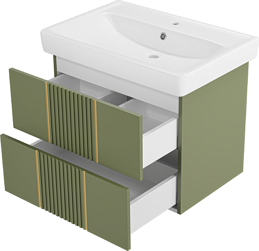 Тумба под раковину Vega 70 подвесная зеленая/золото
