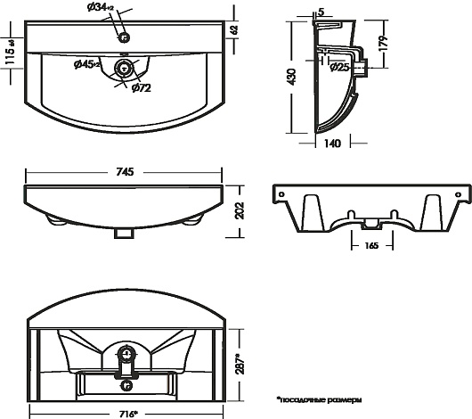 Комплектация: тумба, раковина, ножка (4 шт.).