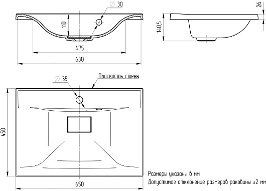 - Раковина из литьевого мрамора со слив-переливом.
