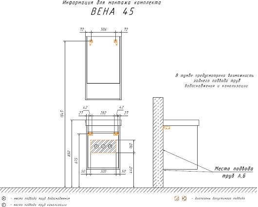 В комплекте: тумба, раковина, комплект креплений.