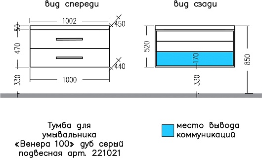 Подвесная тумба с раковиной Санта Венера 100 - арт. 221021 / Classic100м.