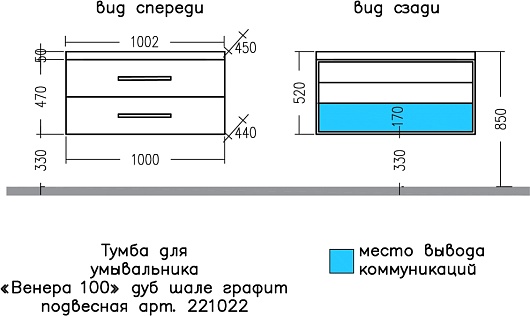 СанТа Тумба с раковиной Венера 100 дуб шале графит