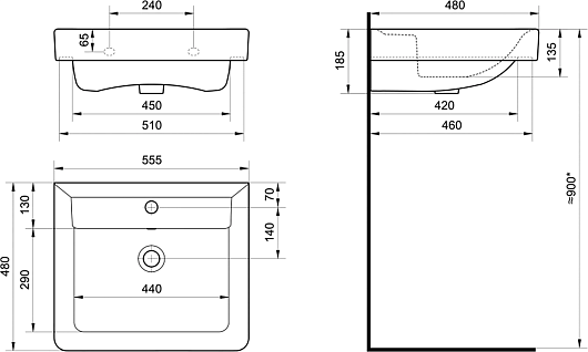 - Раковина со слив-переливом.