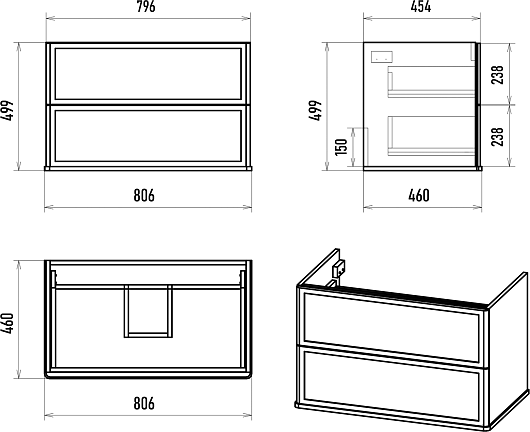 - 2 выдвижных ящика с направляющими скрытого монтажа.