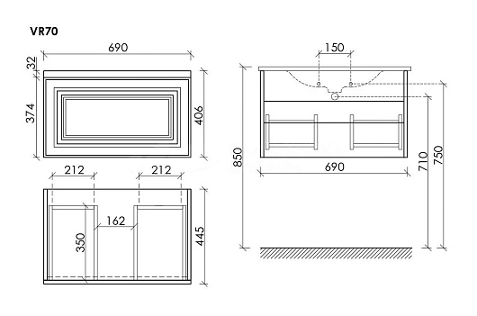 Тумба под раковину Very 70 doha soft VR70SM