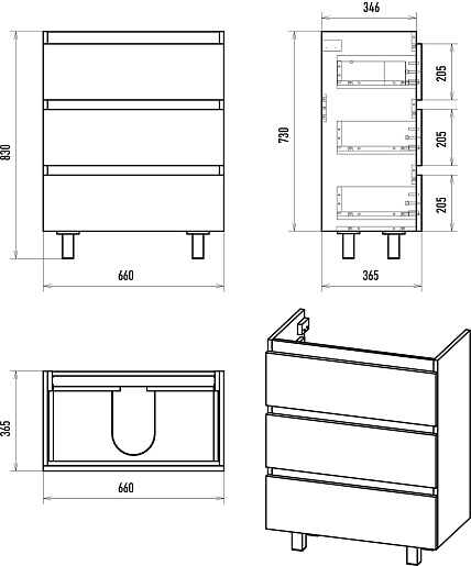 Комплектация: тумба, раковина, ножки, крепеж.