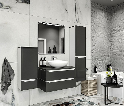Mixline Тумба с раковиной Виктория 80 подвесная графит софт