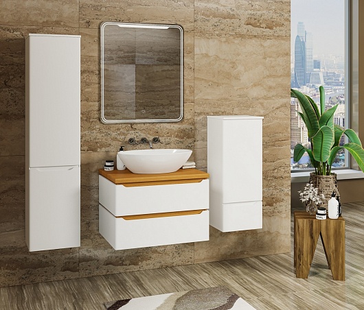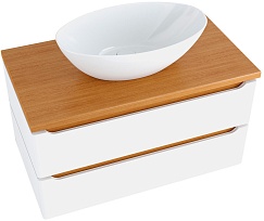 Тумба под раковину Виктория 90 подвесная белая софт/дуб светлый
