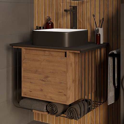 Подвесная тумба с раковиной Grossman Винтаж 70 веллингтон/металл черный - арт. 107007 / GR-4042BW.