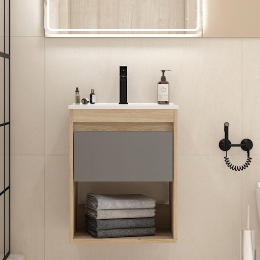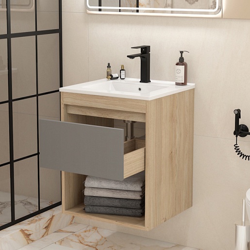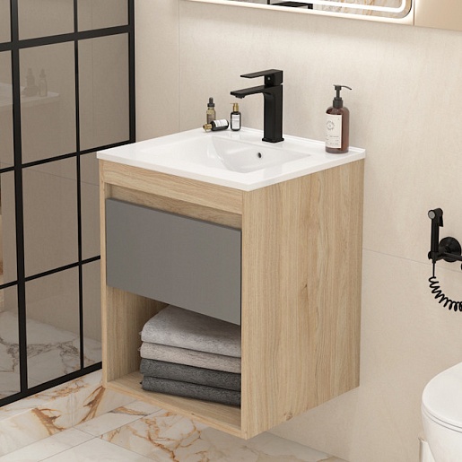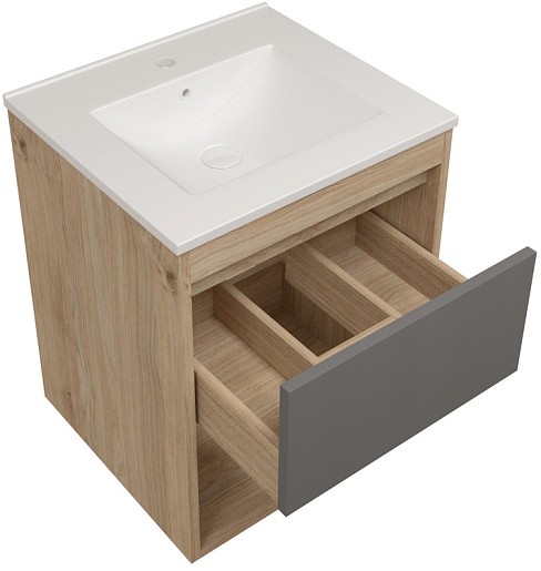 Подвесная тумба с раковиной Teymi Vitra 50 дуб/белый - арт. T60401 / T60407 / T51000.