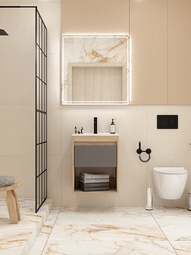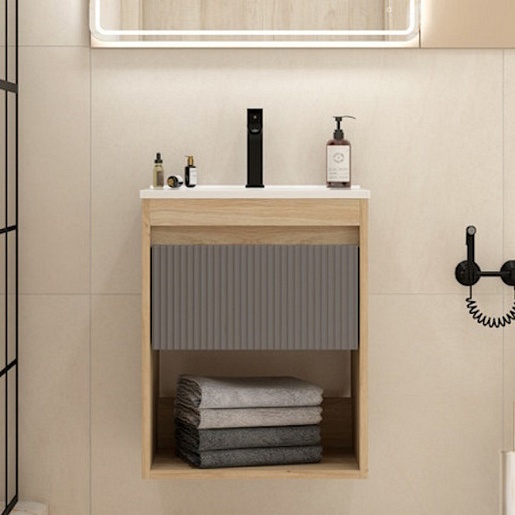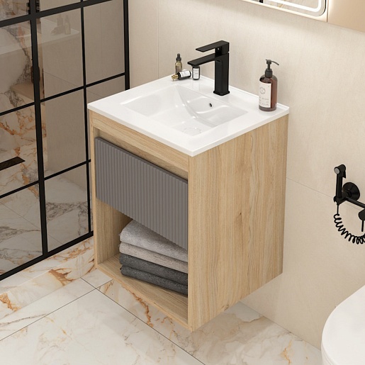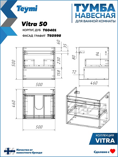 Подвесная тумба с раковиной Teymi Vitra 50 Волна дуб/графит - арт. T60401 / T60417 / T51000.