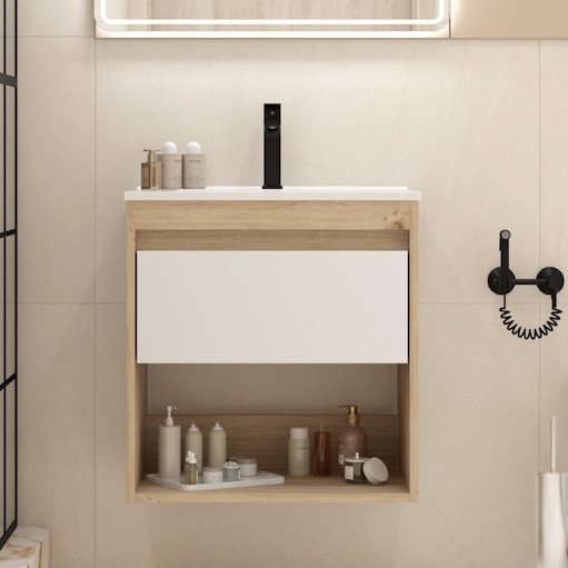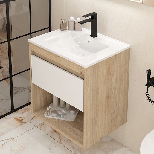 Подвесная тумба с раковиной Teymi Vitra 60 дуб/белый - арт. T60402 / T60408 / T51002.