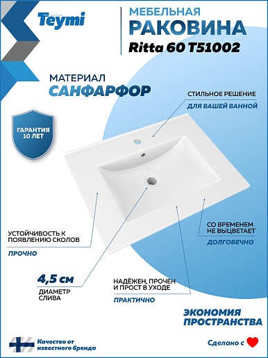 Мебельная раковина Ritta 60 белая