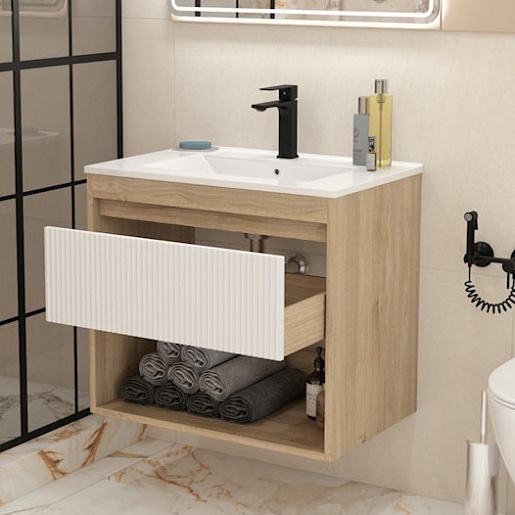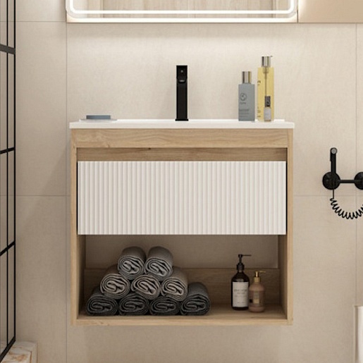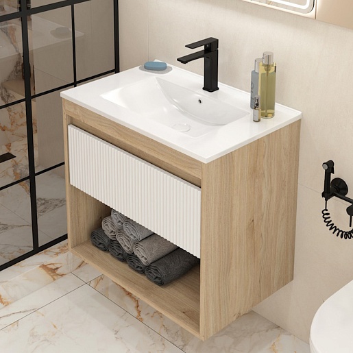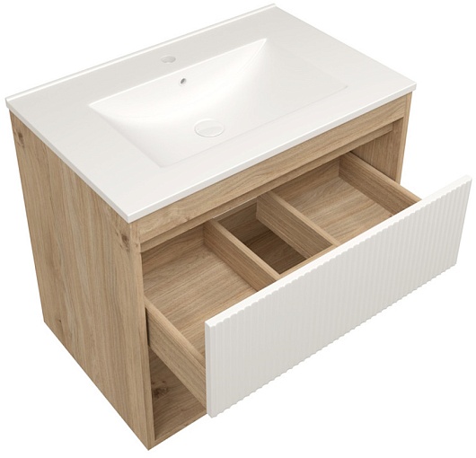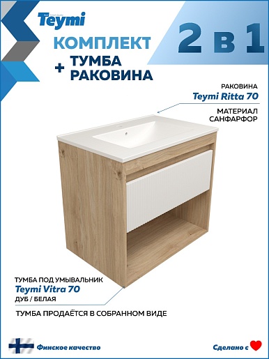 Подвесная тумба с раковиной Teymi Vitra 70 Волна дуб/белый - арт. T60403 / T60420 / T51004.